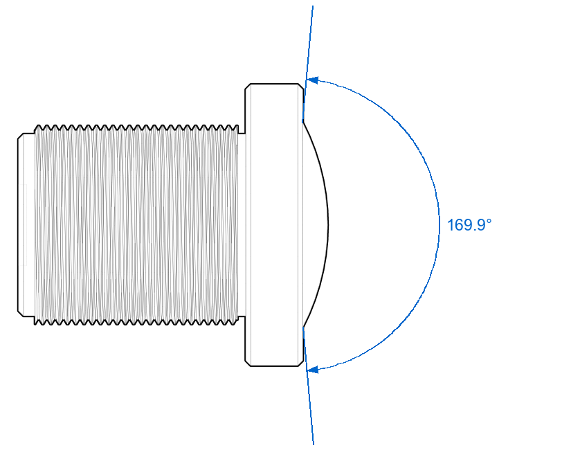 The field angle map shows iso angle contour lines projected through the calibrated lens model onto the sensor plane. Each line represents a constant field angle from the optical axis outward. Straight, evenly spaced lines indicate clean rectilinear behavior. Curved or compressed lines reveal barrel or pincushion distortion. The blue dashed circle marks the image circle boundary - beyond it, no usable image is formed. All content outside the circle is clipped for clarity. This map is the quickest way to evaluate how a lens distributes angular information across the sensor and whether the distortion profile is suitable for your application.